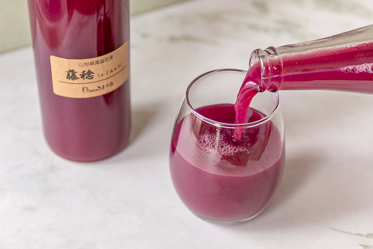 取材担当:廣川県内有数の産地・高畠町のぶどう農家が手がけた「ぶどうジュース」。濃厚な甘みとほど良い酸味のバランスが自慢の黒ぶどう「藤稔」を使用!ぶどうのコクや渋みも楽しめる果汁100%ジュースです。