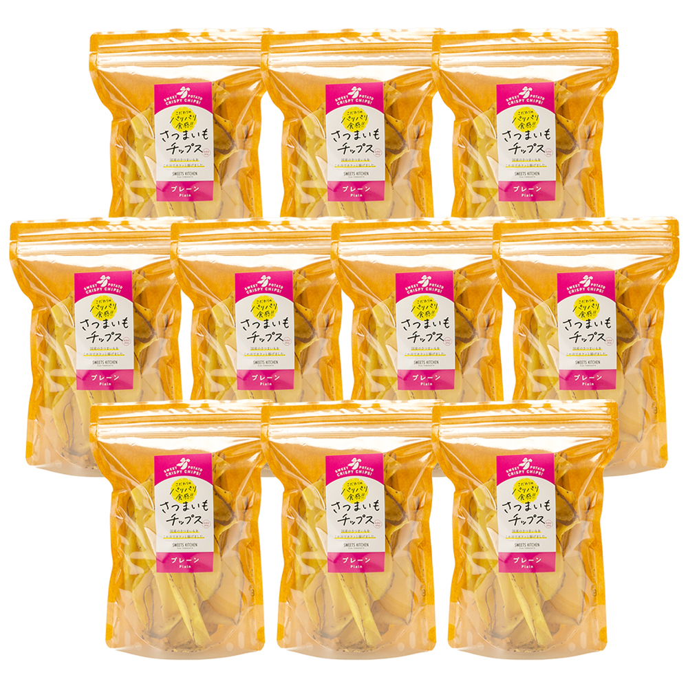 4種類のフレーバーを楽しめる、スイーツキッチンの「さつまいもチップス」。どの味も気になりますが、まずは、スタンダードな「プレーン」からいただきます!