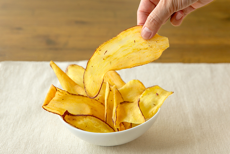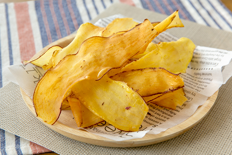 パリッとした食感と、濃厚なさつまいもの旨みが広がるチップス