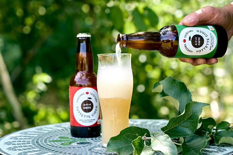 中山夫妻の果樹園では、さくらんぼ、りんご、ラ・フランスなど、さまざまな果樹を栽培・販売している。生産農家が営むカフェの一番の強みは、果樹を知り尽くしているところ。果物の食べ頃を見極める目には自信がある。城樹さんは、「自信をもっておいしいと思える果物をお店で使っています」と語る。主にカフェを仕切るのは、純子さん。果物一つ一つに適した調理法やメニューを考案し、手作りのスイーツを提供している。旬の果物をふんだんに使ったパフェやかき氷、ケーキなどが好評。幅広い世代がお店に足を運んでいる。愛情込めて育てた果物をもっと余すことなく味わってもらうことが、中山夫妻の願いだ。城樹さんは、「果物のロスを減らし、一人でも多くの人に果物を食べてほしい。そのために、今後もクラフトコーラやシードルをはじめ、加工品を充実させていきたいです」と、意気込む。