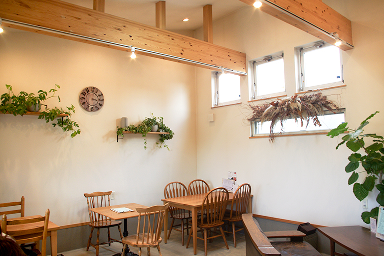 米沢市舘山の国道沿い、大きなさくらんぼの看板が目を引く「よってってCAFFE(カフェ)」。果樹農家の中山城樹さん・純子さん夫妻がオープンしたカフェだ。果樹を栽培し、直売所を切り盛りしている中で、「『自分たちが作っている果物で加工品を作ってみたいね』と、妻と話していたのがカフェを開店したきっかけです」と、笑顔で話す城樹さん。店名の「よってって」には、果物を買いに来た人に、「ちょっと『よってって』ほしい」という思いが込められている。2019年の開店当初は、テイクアウト専門店だったそう。「気軽に買えるもの」、「ちょっと持って帰れるもの」を作りたいと、「りんごあめ」の販売を始めた。今でも買い求めに来る人が多い人気商品だ。2023年に現在のイートインスペースを設けたカフェを創設。落ち着いた雰囲気の店内やテラス席で、多くの人が旬の果物を使ったスイーツに舌鼓を打つ。