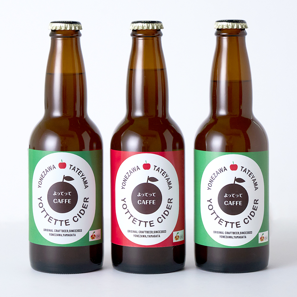 よってってCAFFEがある米沢市舘山地区は、盆地特有の寒暖差と冬の降雪に恵まれ、甘みと酸味のバランスが良いりんごの産地。この地区で栽培された「舘山りんご」は、地域の特産品で、「ふじ」や「紅玉」など、さまざまな品種がこの名で呼ばれています。シードルには、袋をかけない「無袋(むたい)栽培」のふじを使用。太陽の光をたっぷり浴びることで、果肉の中には蜜がぎっしり詰まり、甘みが強くなるのが特徴です。中山さんは、「このシードルをきっかけに、より多くの人に『舘山りんご』に注目してほしいです」と、語ります。