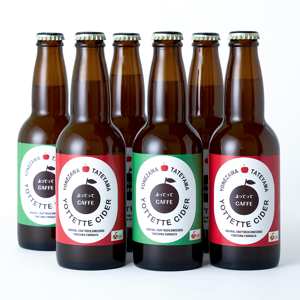 米沢市の「よってってCAFFE」が手掛ける「シードル」は、自家栽培のりんごをたっぷり使用 。果汁100%ジュースにしてから発酵しているので、りんごの風味を堪能できます。ギフトにもおすすめですよ。