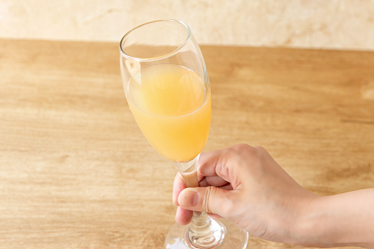 まずは、香りから……わぁ~、りんごの爽やかな香りが、ふわっとしてきました!飲む前から心が満たされます。では、いただきます!う~ん、まろやかな口当たり。りんごの酸味もほんのりと感じる、すっきりとした後味です。