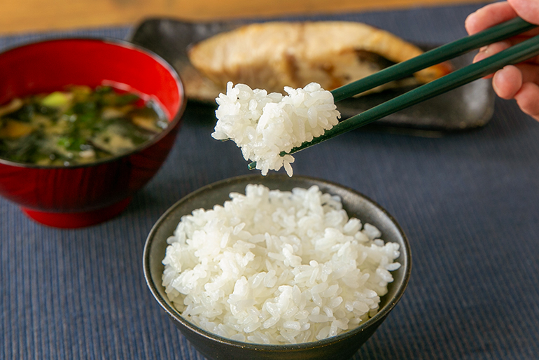 ぱくり……う~ん、上品な味わい!噛むほどに、お米の旨みと甘みが広がります。口の中でしっかりとお米の粒を感じますね~。ほど良く主張しつつ、おかずの味を引き立ててくれます。