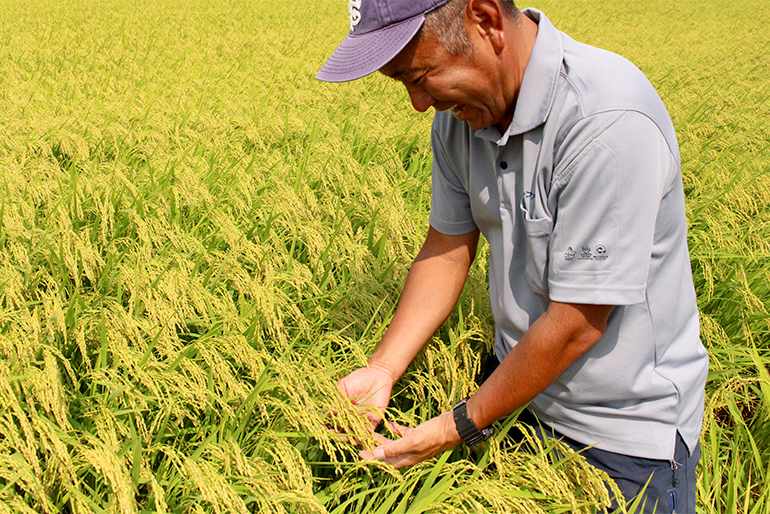 ミネラル豊富な雪解け水に恵まれ、粘土質で水持ちが良い土壌が広がる豊田地区。鈴木・ファームでは、恵まれた環境を最大限に活かすため、「四季の移り変わりに合わせた米作り」を大切にしている。「自然の流れに沿って、適切なタイミングで適切な作業をすることが一番重要です。逆に言うと、どんなに手を尽くしても、タイミングが良くなければ美味しいお米はできません!」と、鈴木さん。天候や稲の状態を確認しながら、田植え・追肥・中干し・収穫などの時期を見極め、稲が健康に育つよう丁寧に管理している。また、環境負荷を軽減して、できるだけ自然な状態で稲を育てるため、農薬や化学肥料を抑えた農法にも取り組む。中でも「つや姫」と「雪若丸」は、農薬や化学肥料の使用を慣行栽培の5割以下に抑えた「特別栽培米」。土壌改良のため、ケイ酸や鉄分などのミネラル資材を使用し、力強く丈夫な稲に育てる工夫を行っている。恵まれた環境と、鈴木さんの細やかな管理や工夫が、豊かな味わいのお米を生み出しているのだ。