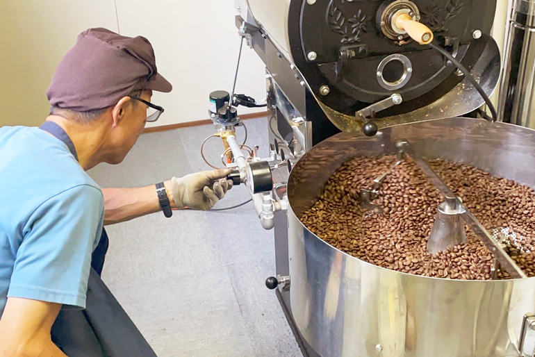 森のアトリエの主な取り組みの一つが、自家焙煎の珈琲「幸せコーヒー」の製造だ。挽き立ての鮮度や香りを大切にするため、注文が入ってから豆を挽き、作り立てを届けるのがこだわり。生豆の選別から焙煎、計量、袋詰めまで、丁寧な手仕事で心を込めて取り組んでいる。ここで働く人々に共通するのは、「私たちが作ってお届けするのはコーヒーではなく『幸せ』そのもの」という想いだ。大切にしているのは、作り手自身が「幸せな気持ち」で作業をすること。「どんなに良い豆を使い、丁寧な工程を踏んでも、心が荒れていたり無理をしていたら、その気持ちは味に表れてしまうんです」と管理者の井上正人さん。淹れた瞬間に広がる香りとやさしい味わいは、作る人の気持ちそのもの。思いが込められた一杯は、日々の暮らしにそっと「小さな幸せ」を添える存在となっている。