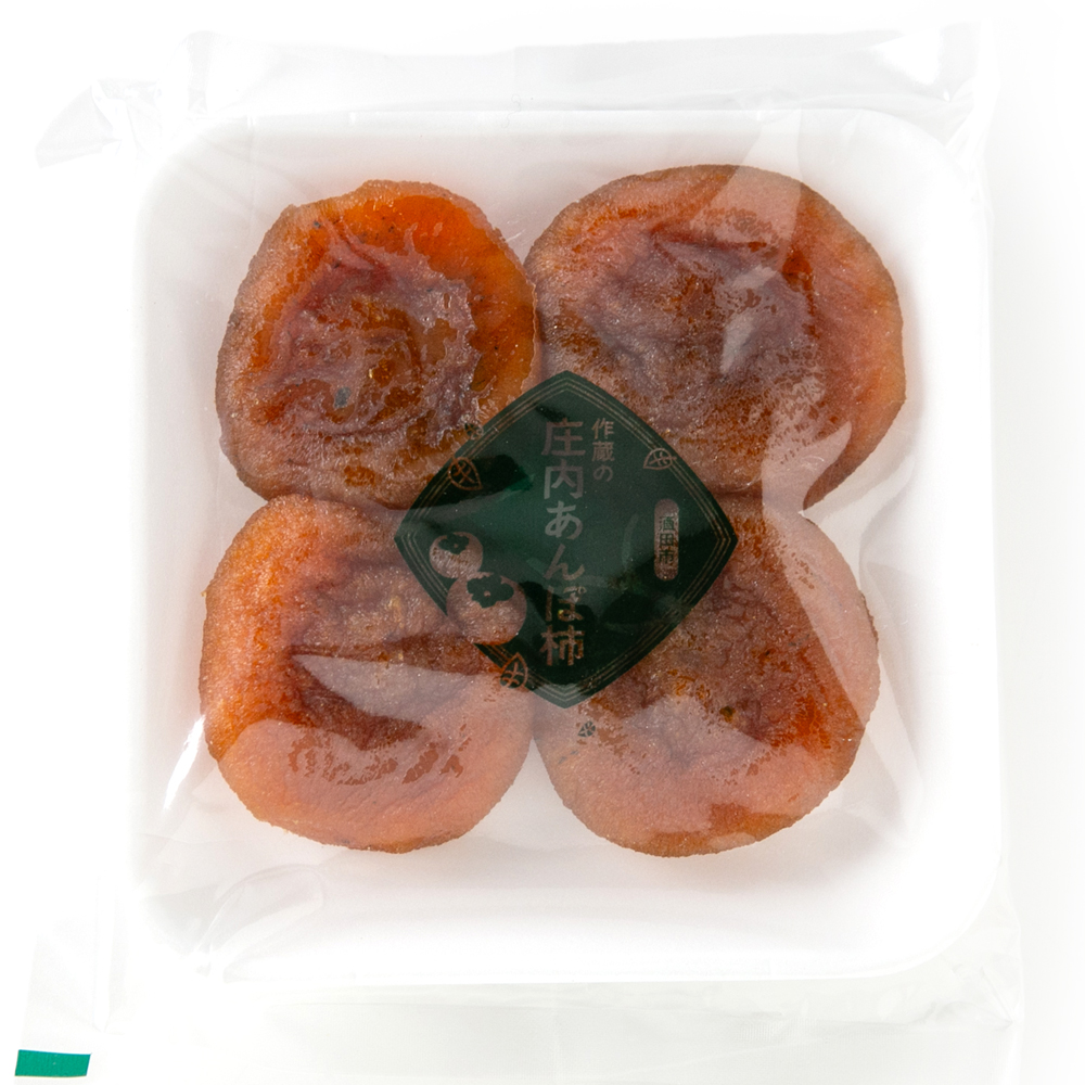 酒田市の柿農家が作る「あんぽ柿」です。最上川の恵みを受けて育った自家栽培の「庄内柿」を、じっくりと乾燥させました。口の中でとろける柔らか食感と、スイーツのような濃厚な甘みをご堪能ください。