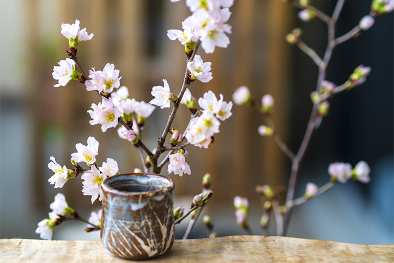 山から切り出した桜の枝 冬に花を咲かせるための工夫