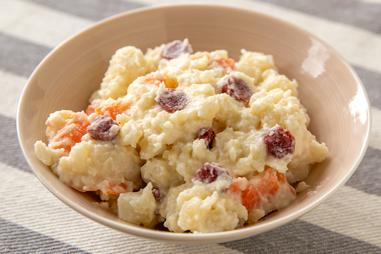 ドライソーセージを刻んで、ポテトサラダにトッピング