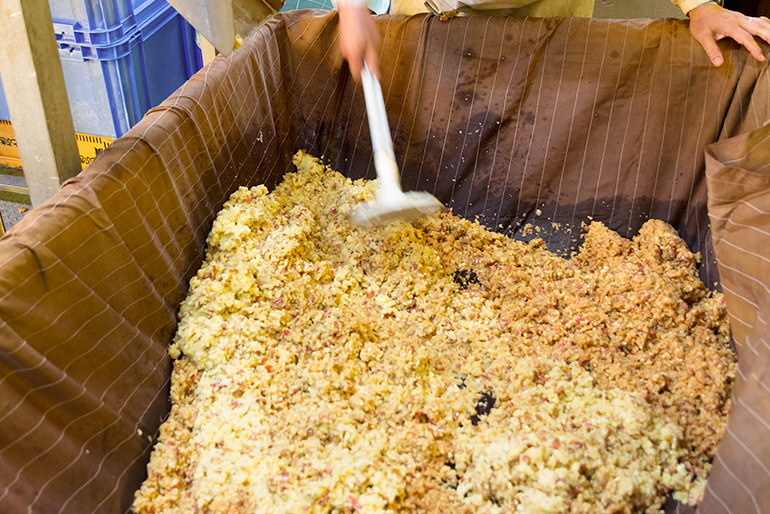 漬物屋ならではの重しの技術で絞ります じっくりと発酵・熟成させた、まろやかな味わい