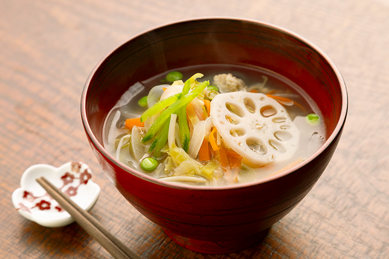 器に盛り付けて、いただきます……。う~ん、美味しい。りんご酢の旨味によって、それぞれの野菜が持つ味わいが引き立っています。全体の味にまとまりも生まれて、いつもの野菜スープよりもワンランク上の美味しさになっていますよ。お手軽なので、毎日の料理に使いたいです!