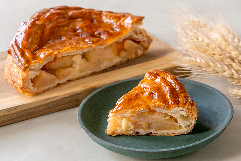 布川さんが手掛ける商品の中でも、厚い支持を得るのがアップルパイ。首都圏の百貨店の催事で販売した際には、製造が間に合わず数時間待ちになることもあったという。「一度召し上がった方が『ぜひお友達にも』と再来店してくださることもあり、リピーターの多い商品です。ギフトとしてもご利用いただいています」と、布川さん。こだわりは、山形県産の紅玉りんごが持つ味わいを最大限活かすこと。フィリングには、シャキシャキとした食感が残るよう、大きめにカットしたりんごを使用。そこに、りんごの風味を引き立てる香ばしいアーモンド生地、手作業で丁寧に折り込んだパイ生地を合わせて焼き上げる。紅玉りんごならではの爽やかな甘酸っぱい味わいを活かすため、シナモンやカスタードクリームは使わない。シンプルなだけに、一つ一つの作業の積み重ねが美味しさを左右するという。布川さんは「粉もバターも冷蔵庫で管理して、一定の温度帯で加工できるようにする。できる限り新鮮な材料を、新鮮な状態で使う。当たり前のことを当たり前にやっているだけですが、それが一番大事なんだと思います」と、力強く語った。