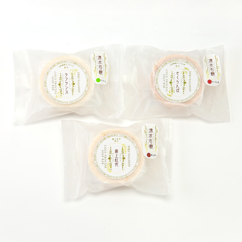■さくらんぼ:山形県産のさくらんぼ果実を使用した、フレッシュな石鹸。