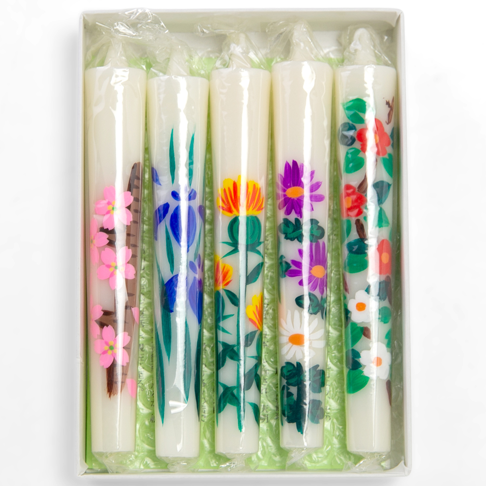 使いやすいミニサイズの絵ろうそくセット。季節の花々の中から5種類を厳選しました。