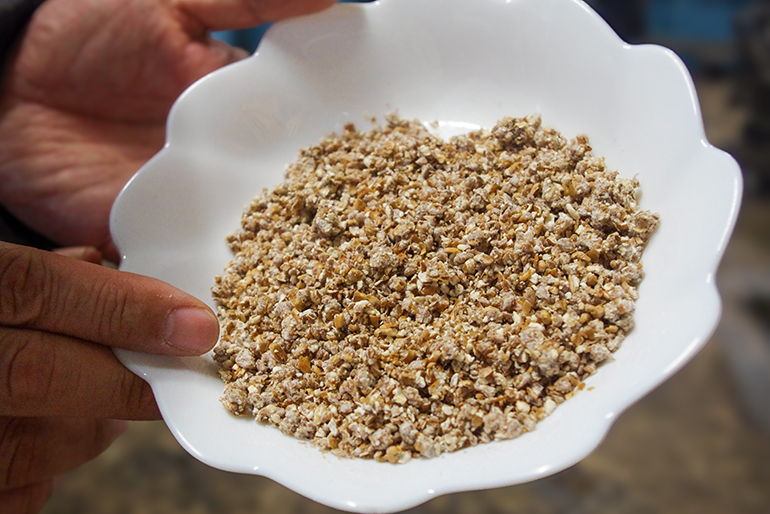 マルタ醸造の看板商品は「月山山吹みそ」。地元を中心に多くのファンを持つ味噌だ。その美味しさの秘密は、随所にある。まずは、材料。味噌の主原料となる大豆と米は、国内産や山形県産の厳選したもののみ。仕込み水には、月山や朝日連峰を水源とする、清らかな水を使用する。次に、米麹の徹底した管理。木造の麹室の中で、三日間にわたり手作業で手入れして育成する。「味噌の旨味を引き出す『酵素』をたくさん出してもらうためには、温度を上げすぎないことが大切です。麹は成長とともに、だんだんと発熱します。だから、職人の手で温度を確認して、ちょうど良い温度になるよう厚みを調整するんです」と、工藤さん。そして、味噌の美味しさの決め手となるのが「天地返し」。天地返しとは、味噌を桶から桶へ移す作業のこと。これを繰り返し、味噌を空気に触れさせることで、酵母菌の活動が活発になり、より風味が引き立った味噌に仕上がるという。そんなこだわり尽くしの「月山山吹みそ」は、全国味噌鑑評会で何度も上位入賞するなど、プロも太鼓判を押す逸品だ。