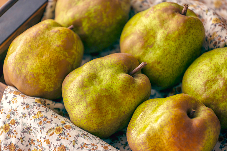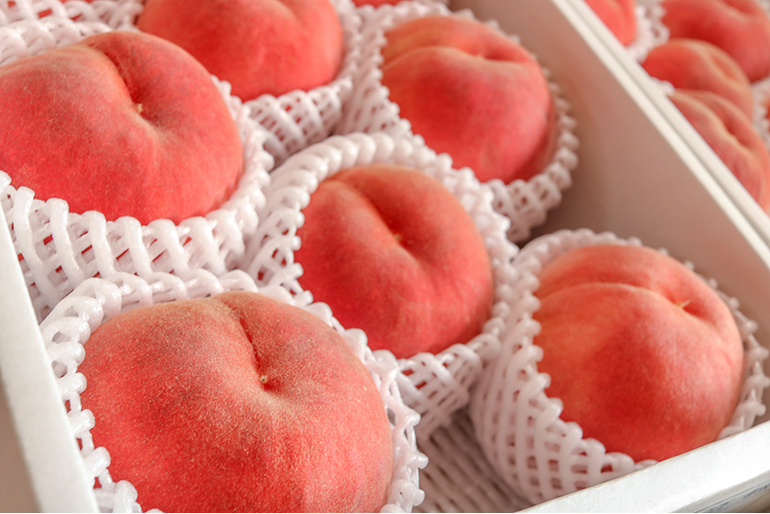 栗原果樹園の根底にあるのは、果樹の一本一本と向き合う丁寧な管理。樹の状態を見極め、その生命力を最大限に引き出した栽培に取り組んでいる。特に注力しているのは、草を生やすことで土壌管理を行う「草生(そうせい)栽培」。果樹園全体に芝を植え、刈りとった芝を果樹の根本に集めて土に還す。こうすることで、土の中の微生物が有機物である草を分解し、肥沃な土壌が形成されていくそうだ。「毎年繰り返すことで、より良い土づくりにつながります。樹が強く健やかに成長するので、農薬や化学肥料を最小限に抑えることができます」と栗原さんは語る。また、収量や大きさよりも、「果実の美味しさ」を優先するのもこだわり。例えば桃の栽培では、「大玉」ではなく、あえて「中玉」を狙って栽培している。「大玉は見た目のインパクトはありますが、味がぼやけてしまう傾向にあります。食感や甘みのバランスがベストな中玉で収穫できるように、着花量を調整するんです。一つの樹にどのくらいの数を実らせるかが、重要になってきますね」と、栗原さんは教えてくれた。