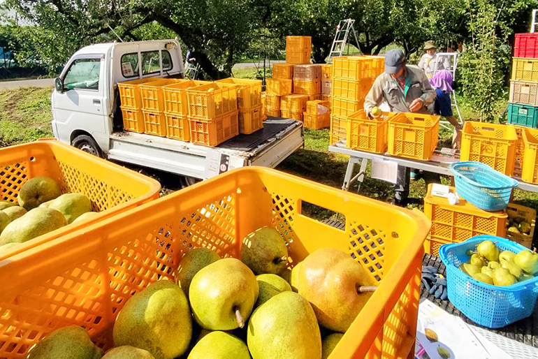 宮城県出身。祖母が理容師をしていたことをきっかけに、理容師の道へ進む。結婚後、妻の実家である果樹園の手伝いをしたことで、自然を相手にするものづくりの面白さ、それを全国へ届けられる喜びを実感し、2020年に就農した。「『百姓の来年』という言葉があるように、次の結果が出るのはまた一年後。だから、この一年をどれだけ充実したものにできるかを考えるようになりました。一つ一つの作業を大切にすることで、より良いものをお届けしていきたいです」と、栗原さん。自分の子どもたちにとって、誇れるような農業をしたいと微笑む。