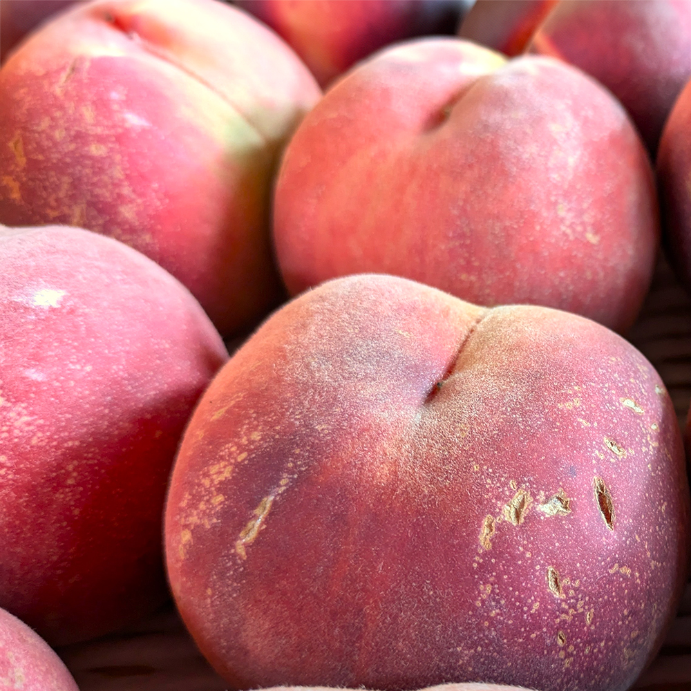 取材担当:廣川果樹栽培が盛んな東根市で育った「白桃」。あえて大玉ではなく、美味しさや食感を重視した「中玉」にこだわって栽培しています。「陽夏妃」や「川中島白桃」など、その時期に旬の品種をお届けします。
