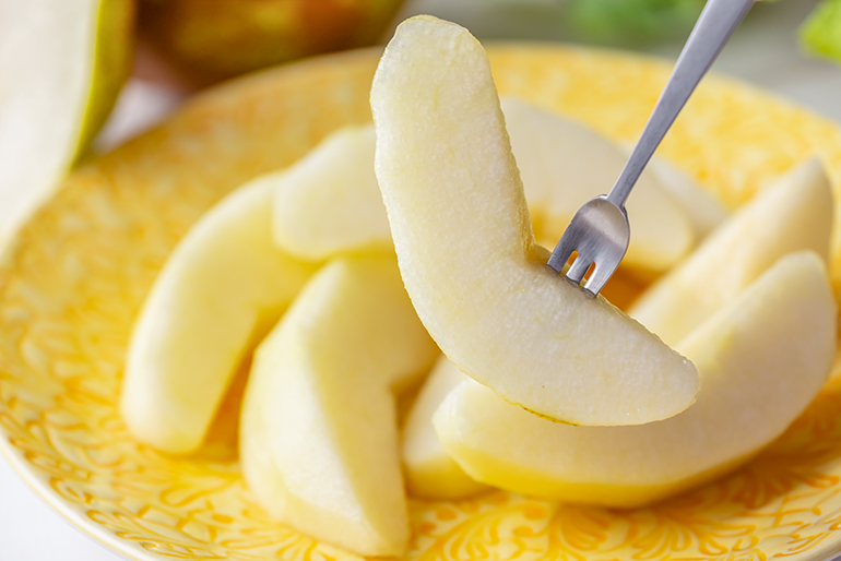 食べ頃を迎えたラ・フランスは、うっとりするような芳醇な香りがしますね~。さっそくカットして、試食します!