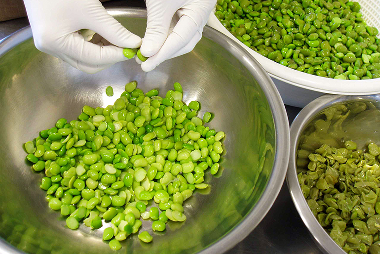 佐徳の看板商品の一つが、鶴岡産だだちゃ豆ともち米を使った「だだちゃ豆おこわ」だ。香り高く、甘みの深いだだちゃ豆は、扱いひとつで味わいが大きく変わる繊細な豆。佐徳では豆の状態を見極めながら、一粒ずつ薄皮を丁寧に取り除き、雑味のない澄んだ風味に仕上げている。もち米には、粘りとコシのバランスに優れた鶴岡産「でわのもち」を使用。豆の香りともち米の食感が引き立つよう、蒸し加減や味付けにも細かな工夫を重ねてきた。こうして完成した味わいは、家庭でも楽しめる形で届けられ、その品質の高さは、雑誌「BRUTUS」のお取り寄せグランプリ受賞をはじめ、さまざまなメディアにも取り上げられ、注目を集めている。