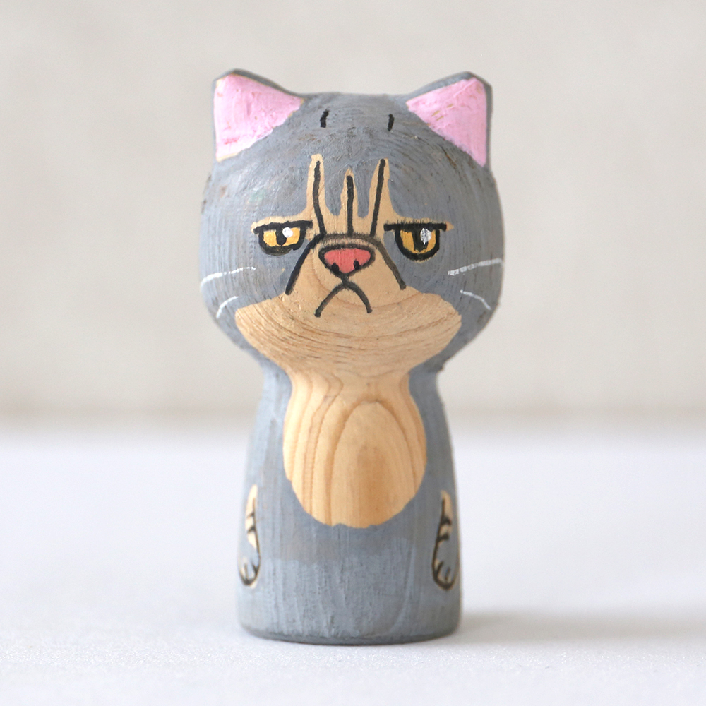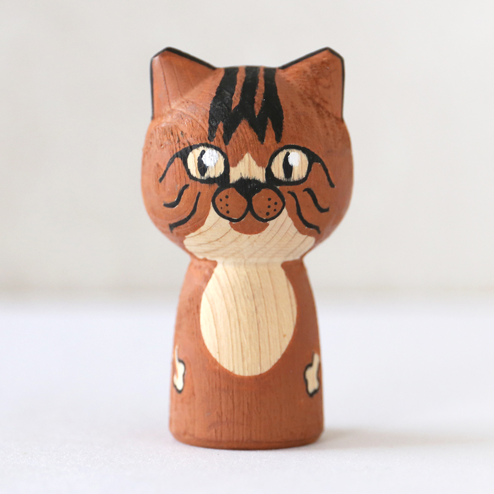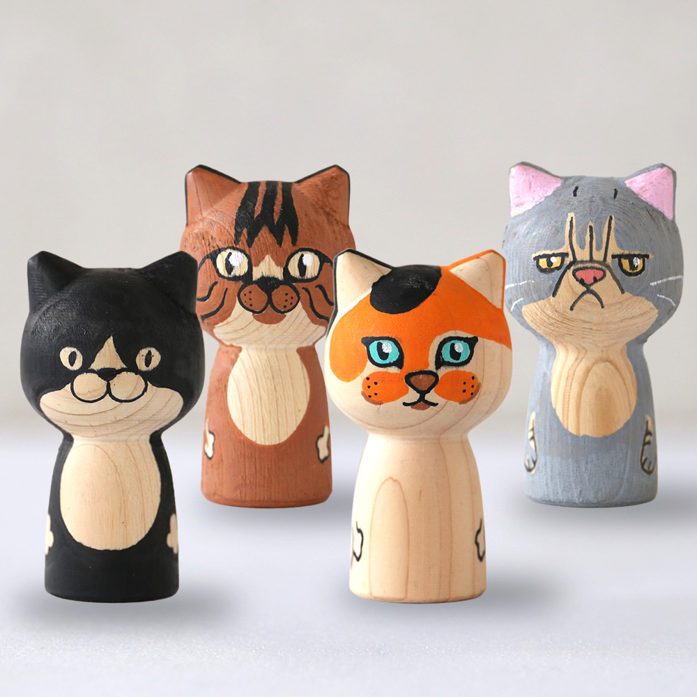 個性豊かな表情とヒノキの香りに癒される「猫型こけし」