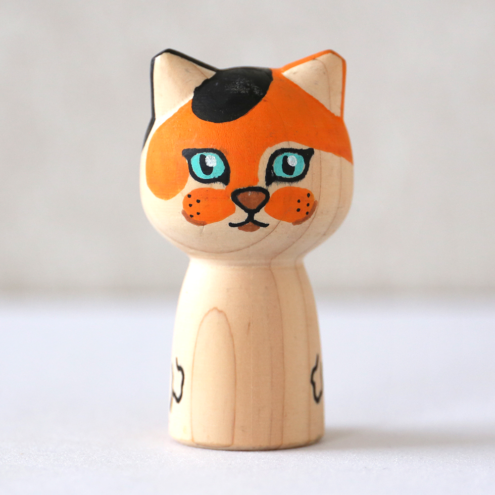 一体一体に命を吹き込みます 手描きの表情が味わい深い「猫型こけし」