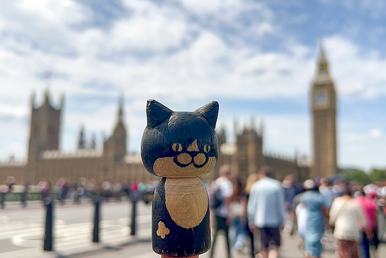 今回は「シロクロ」を連れて、ロンドンへ旅行に来ました。世界に一つしかない味わいのある表情がお気に入りの一体です。バッグに入れてもかさばらないサイズで、持ち運びやすさも抜群。何気ない風景でも、「ねこけし」と一緒に写真を撮れば、楽しい思い出になりますね。これからまた、いろいろな場所に連れて行きたいと思います〜!
