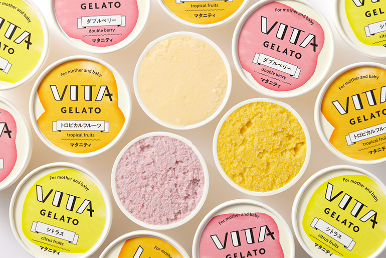 ジェラート専門店として営業する中で、COZAB GELATOにはさまざまなお客様が訪れる。その中には、妊娠中の方や、その家族の姿もあった。「つわり中でも食べやすかった」「妊娠中の娘に贈ったら喜ばれた」といった声が自然と集まるようになり、ジェラートが妊娠期の心身にそっと寄り添う存在になっていることを実感するようになった。こうした現場の声と、代表自身の妊娠・出産経験が重なり、「妊婦さんのためのジェラートを提供したい」という想いが生まれた。そこで開発されたのが「VITA GELATO マタニティ」だ。妊娠期・産後に特化したジェラートとして、山形大学医学部教授の監修のもと設計された栄養配合と、つわり期にも食べやすい味や食感を両立させている。