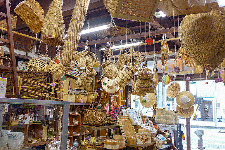鶴岡市本町にある「森茂八商店(もりもはちしょうてん)」は、長い歴史を持つ「荒物屋(日用雑貨店)」。その起源は明暦3(1657)年の記録まで遡り、文政3(1820)年に奉納された神輿にもその名が記されている。現在の店舗は、大正時代の火災を経て昭和初期に建築されたもので、当時の趣を維持しながら営業を続けている。主な取り扱い商品は、畳材料、一般雑貨、洗剤、荒物(竹製品、わら製品)、菓子・軽食(どら焼き、大判焼き、ソフトクリーム、コーヒー)など。昔懐かしいザルやかごなどの道具や竹製品を求めてくる客、神事に使う縄や麻を求めてくる客、無添加の石けんを求めてくる客、大判焼きを買いに来る客など、様々な客が訪れる賑やかな店だ。