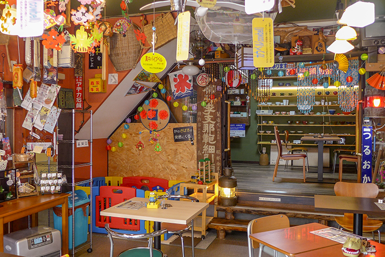 森茂八商店の喫茶スペースには、昭和に流行した道具があちこちに並んでおり、懐かしい雰囲気の中で軽食が食べられるのが人気だ。中でも看板商品になっているのが「鶴岡古地図どら焼き」。ふんわりと焼き上げた生地が包むのは、直火の銅釜で丁寧に練り上げられた風味豊かな小豆餡。ほどよい甘さが、お茶の時間の会話を優しく弾ませてくれる。生地には、屋号の「〇も」のほか、「ありがとう」を伝える「もっけだ」、「大変失礼しました」という意味の「おおぶじょう」など、温かみのある庄内弁の焼き印が。さらに、パッケージには大正~昭和時代の鶴岡公園周辺を描いた古地図があしらわれ、箱を開ければ当時の風景が鮮やかに蘇る。かつての地名を見つけたり、移り変わる街並みに思いを馳せたり。おいしいだけでなく、鶴岡の記憶を語り合うきっかけを運んでくれる。