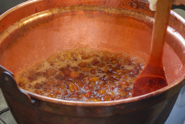 北村果樹園には、加工品の開発・製造を行う部門がある。それが「おによめ.com」だ。「規格外で弾かれてしまう完熟さくらんぼを何とかしたい」という想いから、北村さんが気の合う主婦仲間とともに、2012(平成24)年に設立した。「インパクトを重視して、昔書いていたブログのタイトルから名前を付けました」と、北村さんは朗らかに笑う。古い家を改修した手作りの加工所で、まるで大人のサークル活動のように楽しみながら、ジャムや焼肉のタレなど、さまざまな商品を生み出してきた。大切にするのは、主婦ならではの感覚。「自分たちなら買うか」というシビアな目線で、価格から味わいまで徹底追求する。また、家族にも安心して食べさせられるよう、できる限りシンプルな材料を使い、一つ一つ手作りすることもこだわりだ。「ちょっとしたお茶飲み話が、次の日には商品になっていることもあります。フットワークの軽さも主婦の良いところですね」と、北村さんは微笑む。おによめ.comはこれからも主婦感覚を武器に、「美味しい」「また食べたい」と思ってもらえるような、魅力的な商品作りに挑戦していく。