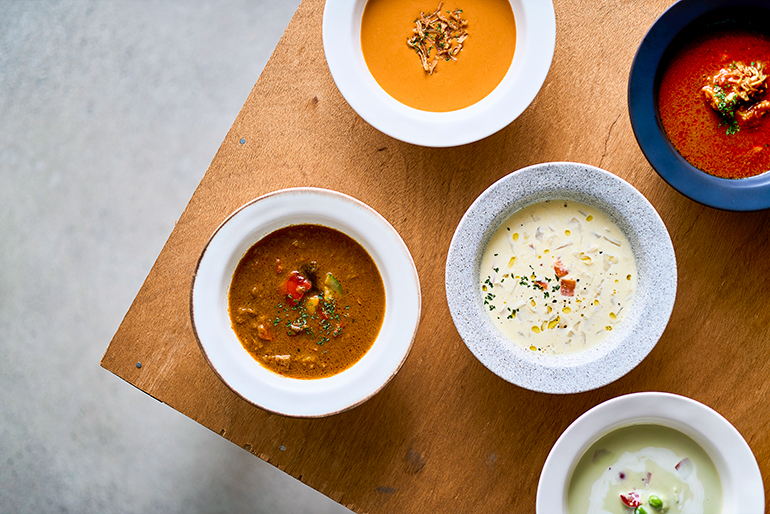 2024年、米沢市にオープンした飲食店兼セレクトショップ「SLOUP(スロープ)」。かつて糸倉庫だった情緒ある建物を改装した店内は、段差のないバリアフリー設計。車椅子やベビーカーを利用する人でも安心して過ごせる「境界のないゆったりとした空間」が広がっている。メニューの中心は、どんな人でも食べやすく、心と体をじんわり温めるスープ。体調がすぐれない時も、自分を労りたい時も、一杯のスープが日常にそっと寄り添ってくれる。素材の旨味を凝縮させた満足感のある味わいが評判を呼び、季節ごとに変わるラインナップを楽しみに通い詰めるファンも多いという。スープのほか、地元が誇る「米沢牛」を使った料理の提供や、店内の一角では「米沢織」などの長く愛せる日用品の販売も行っている。