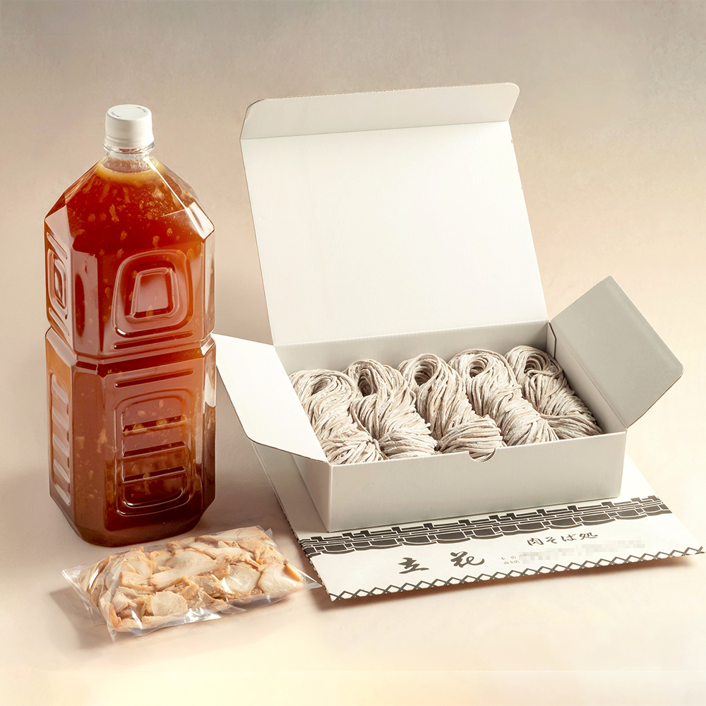 山形で愛され続ける名店「肉そば処 立花」の味をそのままお届け。特製のタレと調理済みの鶏肉付きで、ご自宅で手軽に本場の肉そばをご堪能いただけます。お中元やお歳暮など、贈答用にもおススメです。