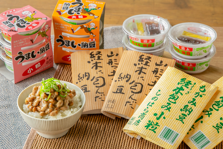 山形県新庄市 店舗ジャンル:食品製造・加工最上納豆は、新庄市で1948(昭和23)年から続く納豆の製造元。奥羽山脈神室山水系の豊富な地下水と厳選した国産大豆を活かし、こだわりの手造り納豆を全国へ届ける。